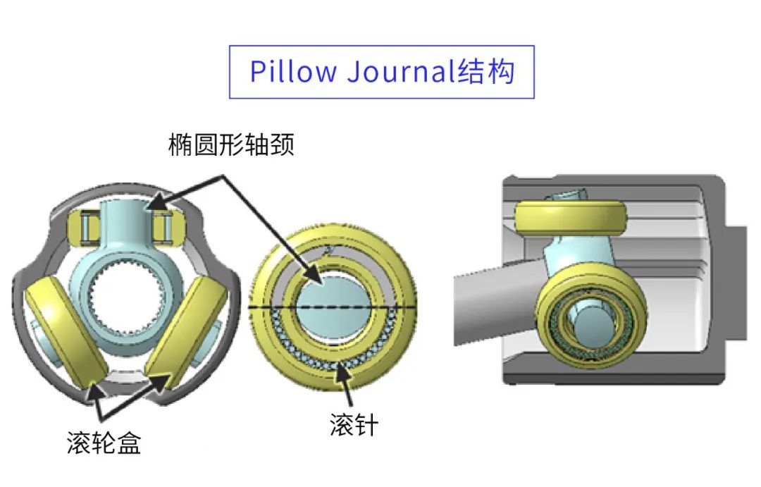 “PTJ”是一種移動型CVJ(等速萬向節(jié)),它采用了NTN獨有的“Pillow Journal結構”,即使工作角度比較大的時候也能抑制內部組件滾輪盒的傾斜。