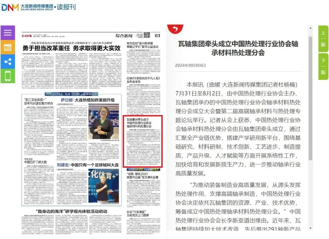 瓦軸集團牽頭成立中國熱處理行業協會軸承材料熱處理分會,將發揮國有企業產業支撐引領作用,通過匯聚全產業鏈優勢,搭建產學研用新平臺,圍繞基礎研究、材料研制、技術創新、工藝進步、制造提質、產品升級、人才賦能等方面開展系統性工作,加快培育和發展新質生產力,進一步推動軸承行業高質量發展。