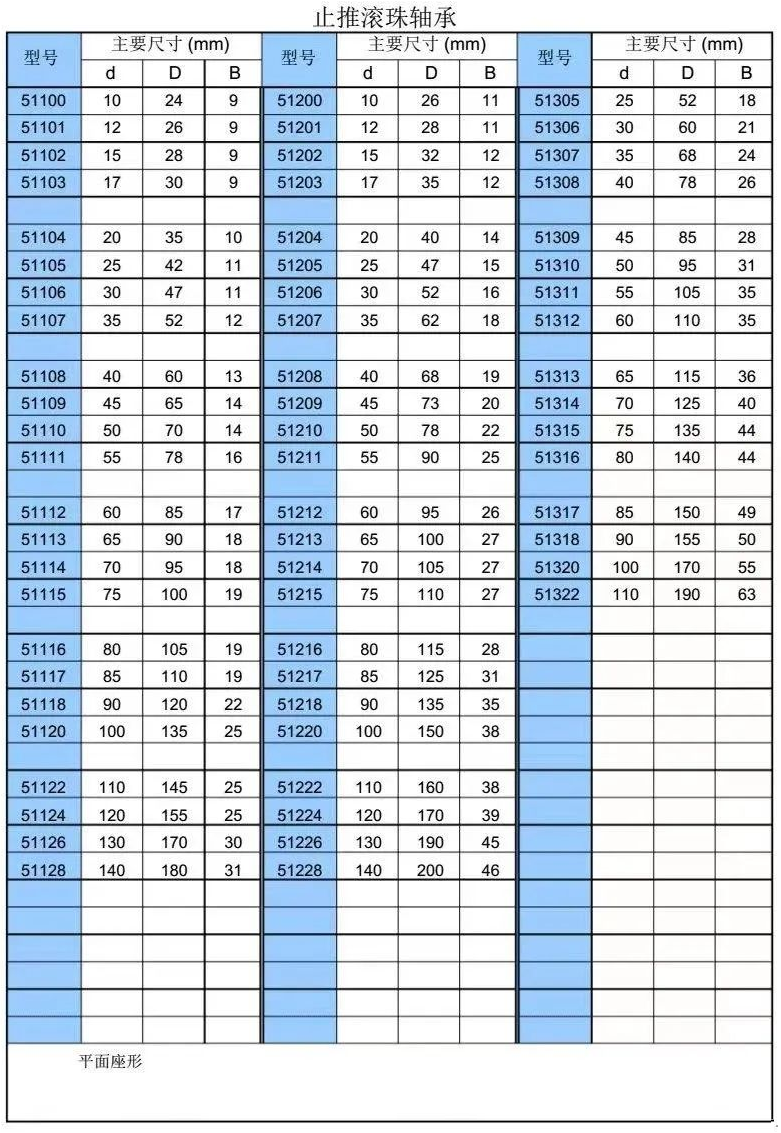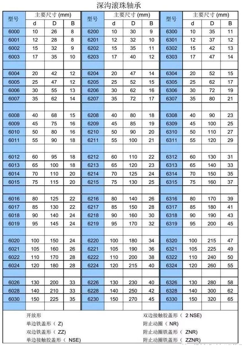 軸承型號尺寸對照表